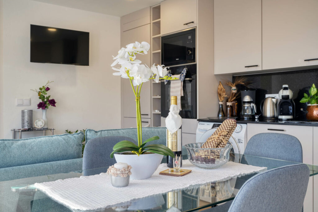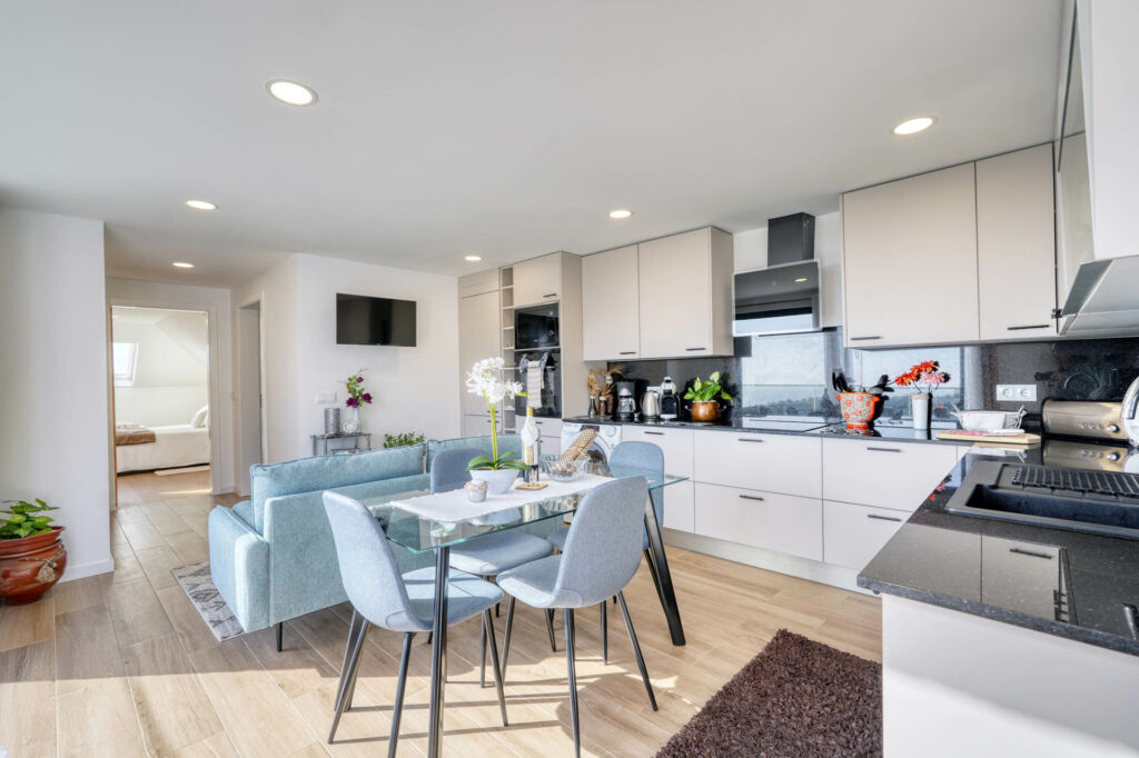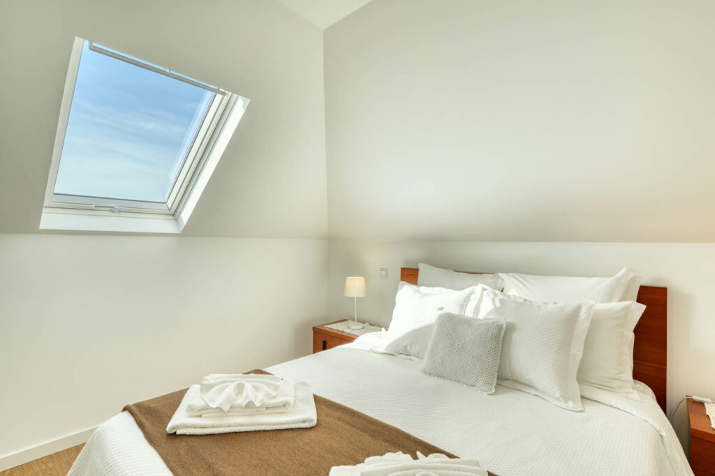 A casa de férias conta com 1 quarto de casal espaçoso e luminoso, uma cozinha totalmente equipada (com frigorífico e máquina de lavar roupa) e com uma sala de estar acolhedora com televisão de ecrã plano.